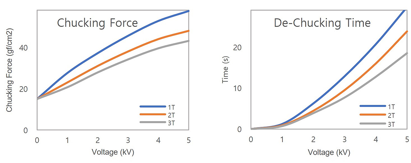 세라믹 정전척은 당사 특허에 의거하여 제작된 제품이며, 고순도 소재를 사용하여 내전압 특성이 뛰어납니다.